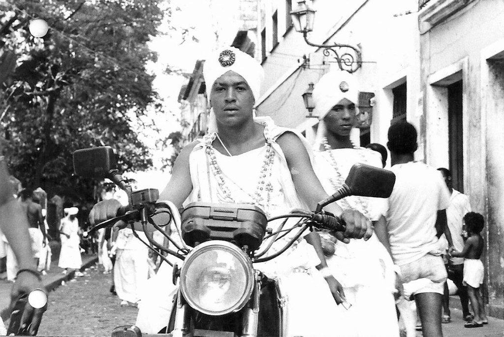 Durante uma semana filmamos das duas da tarde até meia noite, uma da manhã, aproximadamemte. Eu dividia o quarto com o fotógrafo, Paulo Violeta, que assim como eu, fumava, bebia e saía pra folia quando o trabalho acabava. Hermano Vianna dividia o quarto com meu amigo de fé, irmão camarada Reynaldo Zangrandi, que era o assistente de câmera. Os dois não saíam pra farra. Hermano ficava lendo o Seminário de Lacan. O meu amigo de fé, irmão camarada, exausto, tentava ler o ensaio sobre fotografia da Susan Sontag. No carnaval da Bahia…Até hoje rio-me disto.