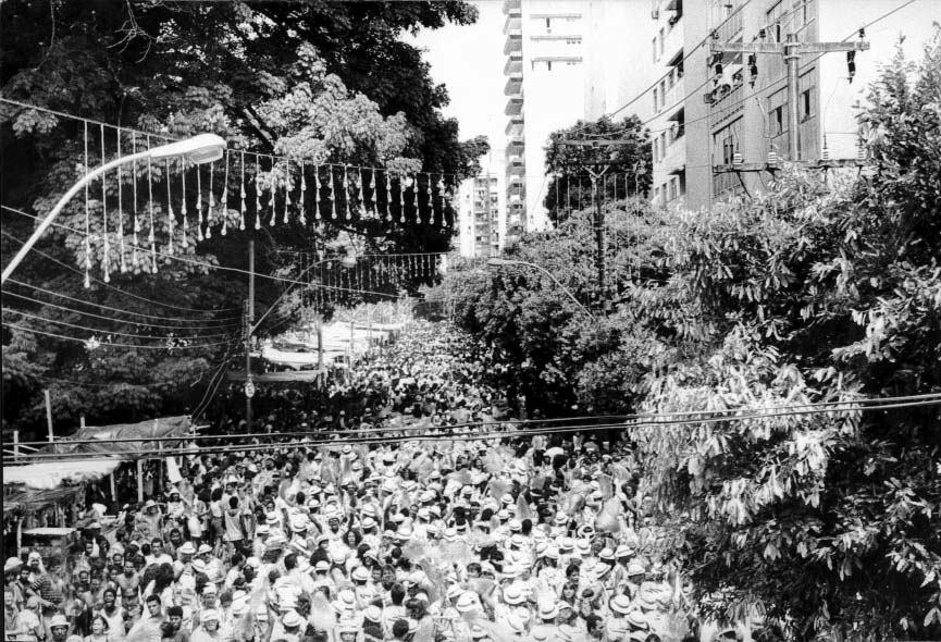 O sucesso daquele carnaval foi Meia Lua Inteira. O Candeal ainda era uma promessa, Luiz Caldas ainda fazia sucesso mas não reinava mais absoluto. Eu gostei mesmo foi de ouvir Sarajane cantando Abre a roda morena e do Gerônimo cantando Abra a boca e feche os Olhos. O grupo de Gerônimo era disparado o mais bacana, um carnaval com sotaque caribenho.