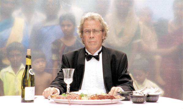 Lars sempre foi obcecado com o Homem Perfeito, curta experimental de Jorgen feito nos anos 60. E pediu para o próprio Jorgen recriar o filme com 5 obstruções que ele vai apresentando ao longo do processo de produção. Me lembro de algumas: as cenas terão que ter planos de pouquíssima duração, uma parte vai ter que ser em animação, ele tem que recriar na Índia, numa rua cercada por miseráveis, uma cena de um banquete. Tenho comigo uma leitura, psicanalítica de chope quente, de que a homenagem de Lars é ao mesmo tempo tributo e vingança. Para sublimar (sublimar é palavra básica de psicanálise chope quente) a inveja, eu provoco e torturo meu mestre.