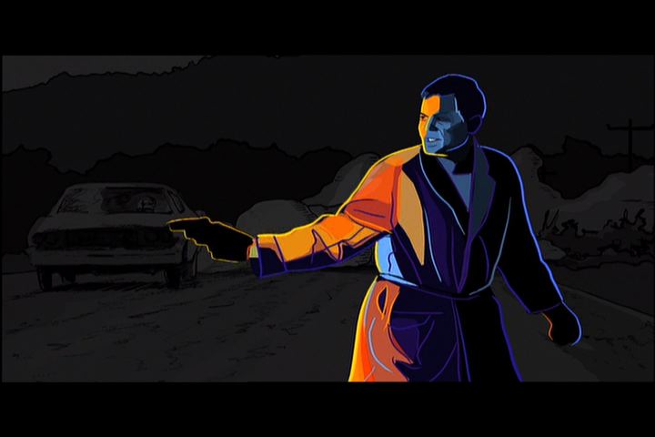 A captação da entrevista foi na linha dogma zero noventa e nove, a linha recorrente da velha e boa miséria brasileira, do vamos lá e filmamos do jeito que der. Com equipamento emprestado pelo Piero Mancini, na casa da Joana, a montadora, não a mãe. E se eu não perco piada idiotinha, imaginem se eu ia perder a chance de aplicar algumas obstruções? Elas estão explicadas no começo do filme: