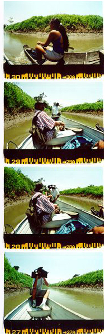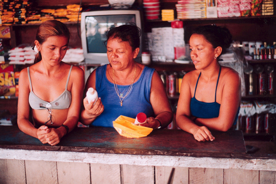 De Santarém fomos de barco, numa viagem de 12 horas, até Santana de Ituqui, um vilarejo nas margens do Tapajós, onde a luz elétrica funcionava até a hora da novela das oito terminar. O plim plim era a senha pra desligar o gerador. Socorro, professora de alfabetização, casada com outro professor e mãe de dois filhos passou a vender Avon pra complementar a renda e pra matar o tédio. A atividade mudou a vida dela, que agora tinha assunto e o que fazer durante a tarde. Ela já tinha treinado uma outra vendedora, uma ex-aluna, que agora, prestes a embarcar pra Belém pro colégio militar, onde se imaginava linda de farda, percorria os igarapés oferecendo os perfumes que conseguia com Socorro. Com Deisiane, eu consegui fazer a cena da canoa,não como o imaginado na mesa do Joia, mas tão bonita quanto.