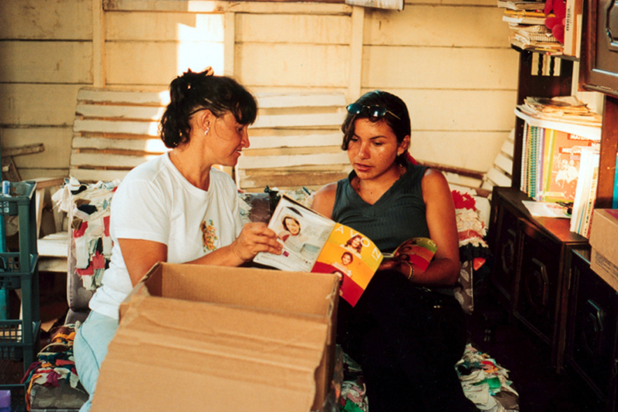 Nuno e Laís também conheceram a Domingas e a Lu, irmãs que vendiam seus produtos na periferia de Santarém. No dia da filmagem, elas acordaram bem cedo pra pegar o primeiro ônibus até Jacamim, um bairro com uma pequena comunidade quilombola, a vinte km de Santarém. Elas desceram na estrada, bem na frente da casa de uma cliente. No início dos anos 2000, no catálogo de 50 páginas, eu acho, da Avon, havia uma, talvez duas páginas com modelos negras. Dali, elas entravam num ramal de estrada de terra e caminhavam o resto do dia, batendo nas casinhas ao longo do percurso. Aquele foi um dia longo e de poucas vendas para elas. Um coach hoje diria que Lu e Domingas não deram tudo de si, por isto, fracassaram. Diferente da Ana, a campeã nacional de vendas, que morava num conjunto habitacional em Belém. Ana bancou a faculdade dos filhos e montou a casa só com os prêmios que ganhava como vendedora líder: televisão, forno de micro-ondas, freezer, fogão, geladeira, frigideira, colchão, cobertores (oferecidos para o frio amazônico). Na surdina, a Avon tentou proibir as vendedoras de aparecerem no filme. Detalhe, as vendedoras da Avon não são funcionárias da empresa. Eu tava pouco me lixando se os produtos eram da Avon, da Boticário ou da Chamma Amazônia. Mas acho que a Avon, que se orgulhava das vendas da Ana, não queria ver seus produtos num filme que mostrava eles sendo consumidos por mulheres descalças e homens sem dentes. No fim, conseguimos, depois de muitos telefonemas, e-mails, uma autorização pra filmar uma reunião do time de vendas.