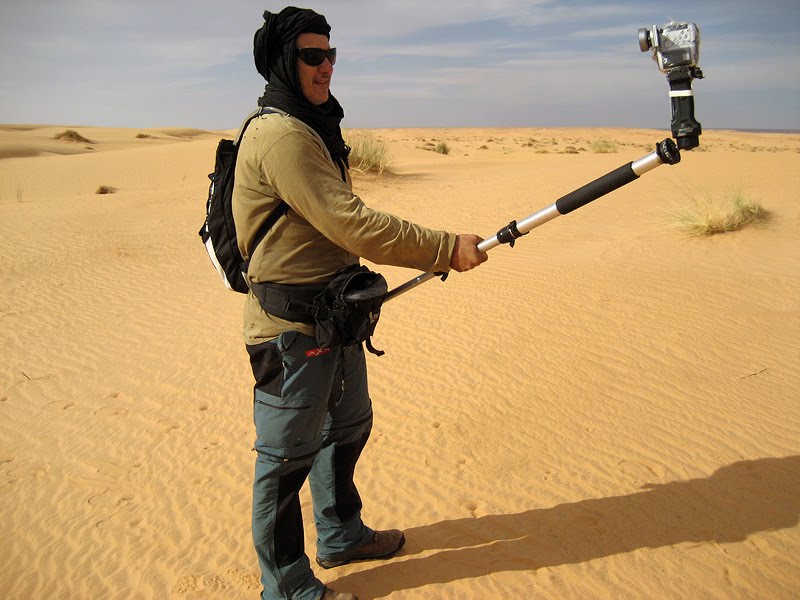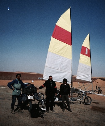 Que parte da África? Em 1988 eu cruzei de bicicleta da Nigéria até Burkina Fasso, passando pelo Benin, Togo, Gana e a Costa do Marfim. Foram 4 meses, eu tinha 20 poucos anos de idade naquela época. No final da viagem, quando eu percebi que estava nas portas do Saara, eu disse pra mim mesmo que ainda voltaria para percorrer aquele deserto. Dois anos depois eu construí um carro a vela, um tipo de wind-car, parecido com aqueles que os gaúchos usam na Praia do Cassino. Levei este carrinho pro Saara, pra atravessar a Argélia em 1992. Foi uma epopeia, a Argélia em guerra, um puta trabalho de logística pra entrar no país, enfim, eu consegui colocar esse carro na Argélia. Quando terminou a viagem, eu olhei novamente pro Saara e disse: vou atravessar isto a pé!