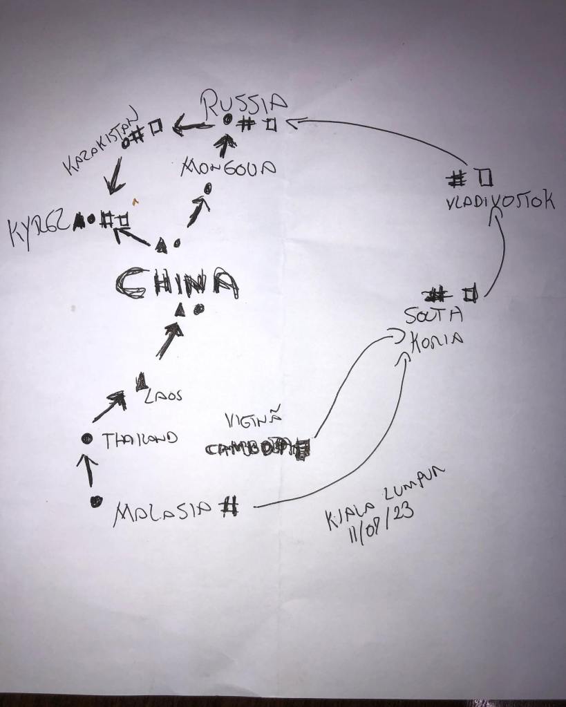 Neste momento eu tô em Kalimantan, Bornéu…minha moto quebrou em Java, quando o conserto ficar pronto eu sigo subindo pra Malásia, vou ao Brunei, pode ser que eu deixe a moto no Brueni e dê um pulo nas Filipinas, que é rápido, depois eu me mando pra Kuala Lumpur, sigo pra Tailândia, Laos e aí eu cruzo a China. Vai ter um trâmite gigantesco pra atravessar a China…e os meus amigos já não estão mais no Quirguistão.