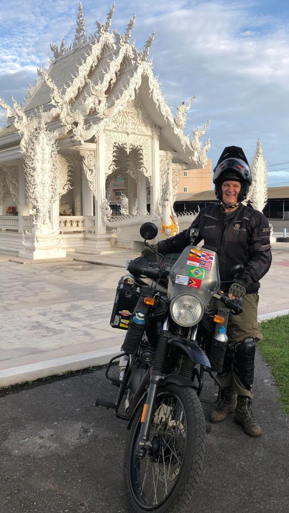 Eu fui paraquedista, eu velejei, eu já fiz uma porrada de coisa. Eu não sou de nenhuma tribo e sou de todas. E eu não sou um cara que tem grana. Então no dia 12 de março de 2019, dia do meu aniversário, um casal de amigos que estava no Quirguistão me ligou. Porque você não vem nos visitar. Eu abri o mapa, Quirguistão, onde é isto??? Eu dormi agitado e no dia 13 eu olhei pra minha irmã e disse pra ela: vou voltar pra estrada. É o único lugar que eu sei sobreviver, onde eu sei me virar, eu praticamente nasci na estrada, então eu vou pro Quirguistão. E eu vou de moto pela Oceania. Saí do Brasil, fui pra Argentina, consegui enviar a moto pra Austrália, rodei toda a Austrália, até que começou a pandemia. Dormi num camping por sete meses esperando o visto pro Timor, fui pro Timor Leste, fiquei dois anos morando no Timor, quando abriu a fronteira eu fiz uma viagem pela Europa com a minha irmã. Nos encontamos em Portugal, compramos um motorhome e viajamos…Voltei pro Timor e agora estou na Indonésia. Seguindo pro Quirguistão. Resumindo: eu tô on the road, há praticamente 40 anos. São 70 países…