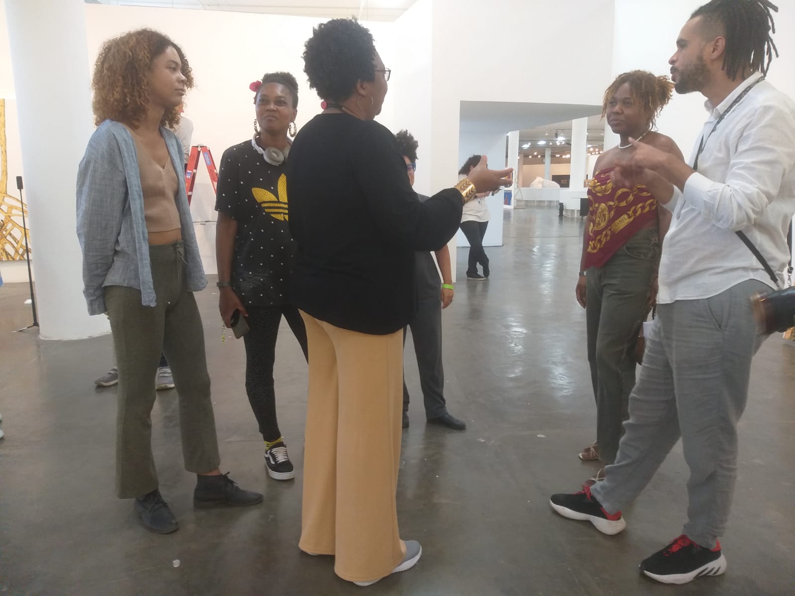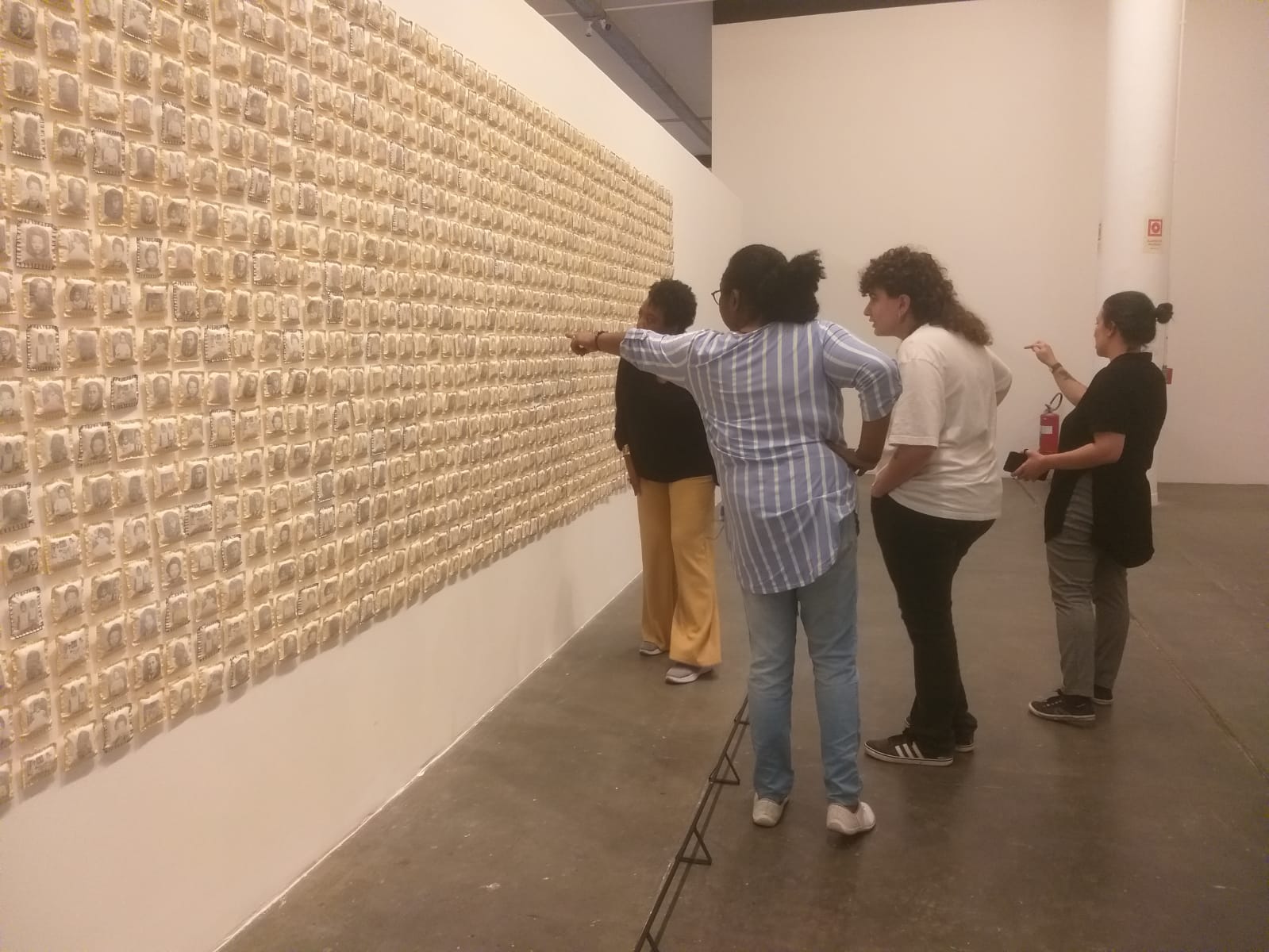 RP: Eu sou mesmo. Muitos passaram pela minha mão. Eu orientei a Charlene, que agora tá na equipe e neste momento está no Texas, a Castiel, que está na Bienal e foi minha orientanda, o No Martins foi meu aluno também. Eu diria que nas duas ou três primeiras gerações de artistas, críticos, historiadores, vários passaram na minha mão, de uma maneira ou de outra. Ou estudando diretamente comigo, ou tendo seus portfolios avaliados e depois eu orientando e dialogando com eles, ou simplesmente com eles olhando o meu trabalho e vendo que é possível também trabalhar e fazer arte. Hoje eu recebi uma mensagem muito bonita de uma moça negra falando que a prática no ateliê dela vinha de poder olhar para uma outra mulher negra produzindo arte, e que eu era a principal referência dela. Então essa linhagem de artistas mais jovens que se inspiram em mais velhas, eu acabo sendo madrinha deles por essa via. Afilhada e afilhado é que não falta.