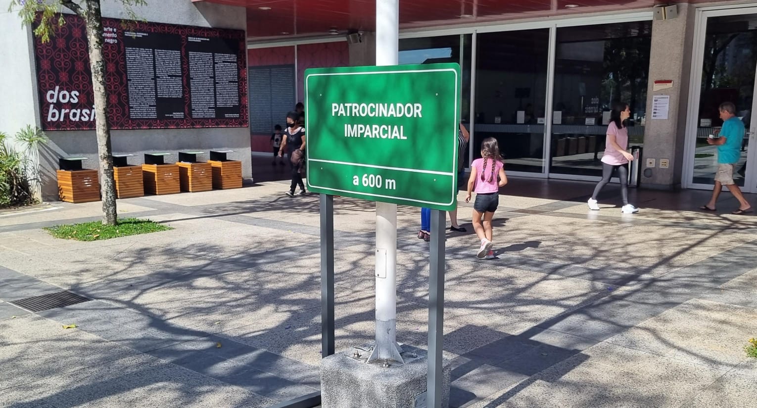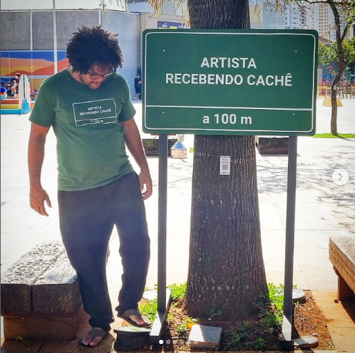 A sinalização profética serviu de mote pro trabalho que Augusto apresentou na exposição Dos Brasis, uma mostra que já virou histórica e que rolou no SESC Belenzinho em São Paulo (agora ela está no SESC Quitandinha em Petrópolis, no estado do Rio). Placas indicativas sinalizam a presença de outras situações-objetos de desejo, agora no mundo das artes: artista recebendo cachê (a foto foi capa de uma edição da corda em dezembro), diretoria indígena a 500m, diretoria negra a 400m, curador simpático a 200m, patrocinador imparcial a 600m.