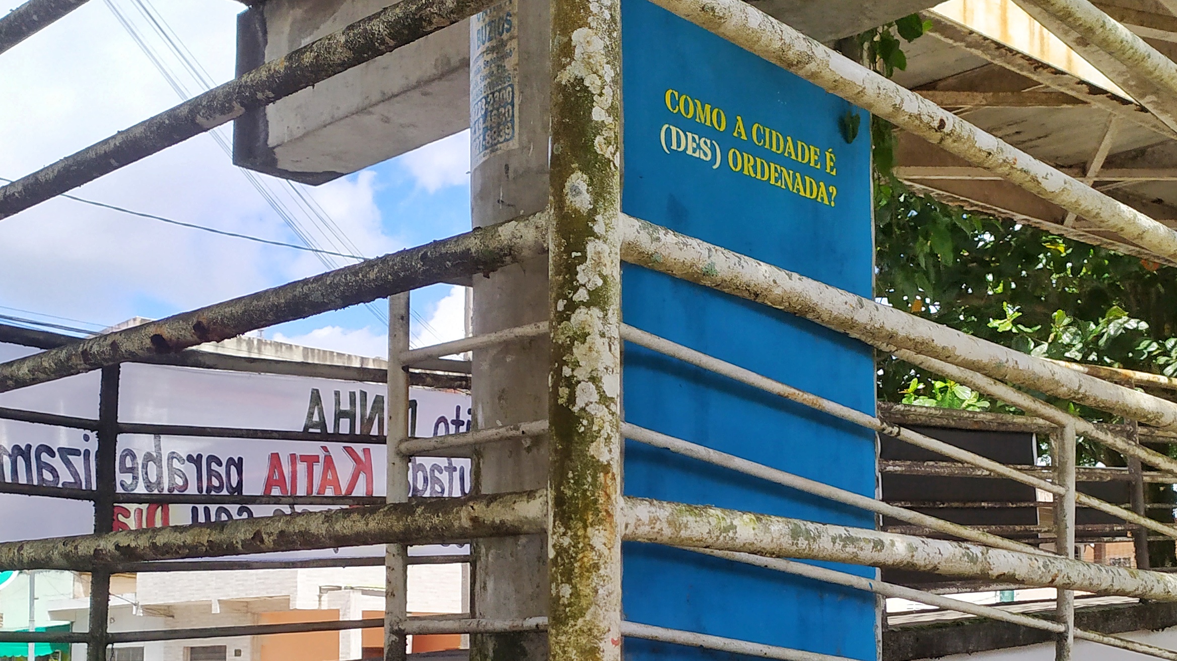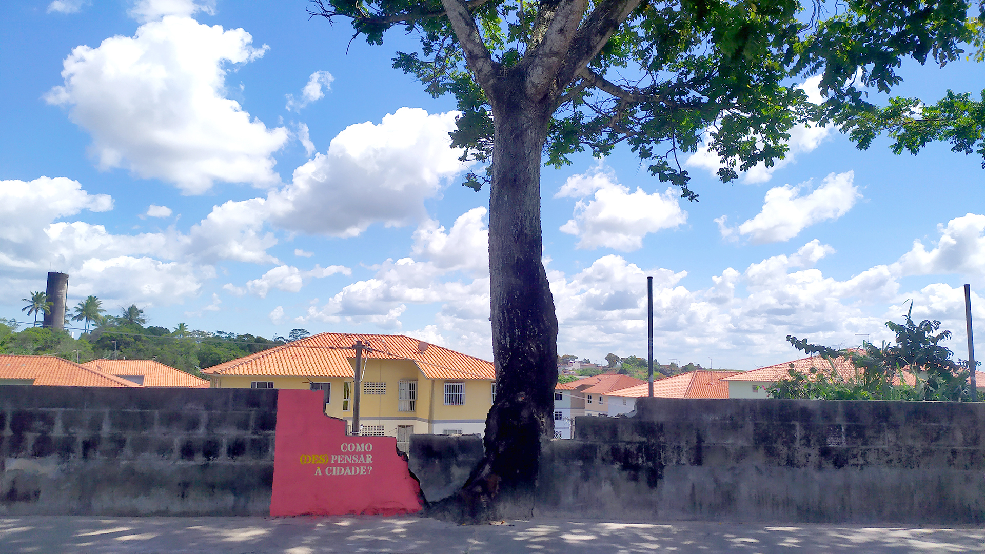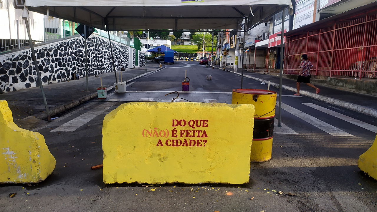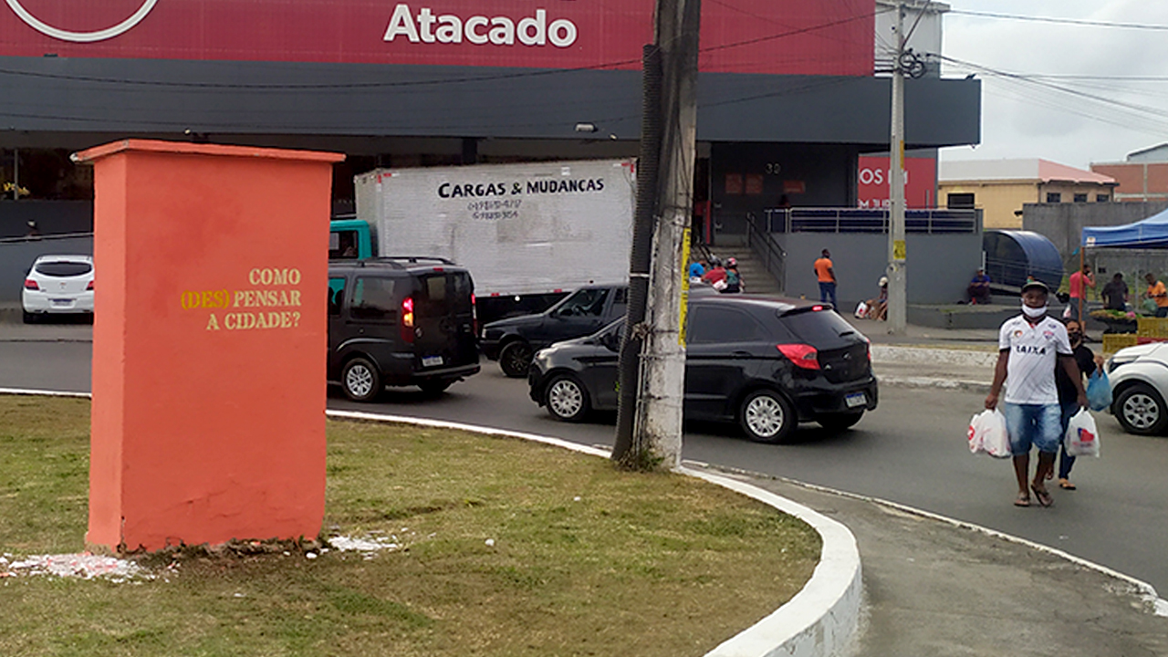 Esta introdução burocrática, mais insossa que relatório de barnabé de letra ó é pra dizer que apesar de ter o sétimo PIB da Bahia, a população da cidade pouco aproveita da estatística e das mais de 200 indústrias. E pra dizer que apesar do texto do site do Augusto Leal parecer ingênuo e utópico, o trabalho dele é foda pra caralho! Nos últimos 5 anos Augusto se concentrou basicamente em pensar sua arte como uma ferramenta para discutir, questionar e debater a cidade em que ele vive. As perguntas que Augusto faz são simples como as frases que ele pintou em vários pontos da cidade: É possível transformar a cidade sem refletir sobre os pensamentos que orientam a sua ordenação? Como pensar novas formas de ocupar e interagir no espaço público? Utopia só tem sentido com prática.