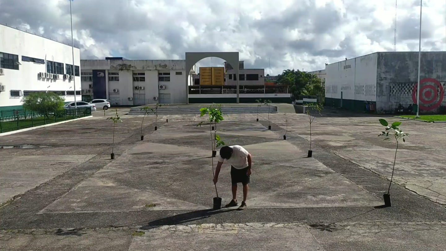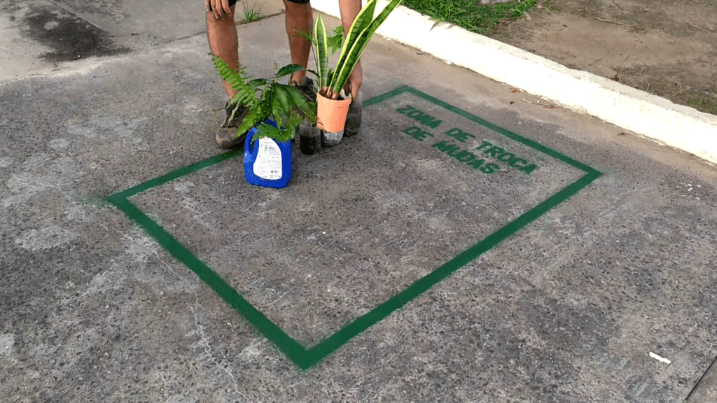 As ações seguiram com os três atos da Sinfonia do Encontro na Praça da Bíblia. Augusto colocou mudas de árvores nativas da mata atlântica. Jogou sementes de aroeira no concreto (você é aroeira ou bambu?) e demarcou uma zona para trocá-las. Também fez uma fila para o nada, junto com o GIA-Grupo de Interferência Ambiental. Espalhou lambe-lambes convidando a população para visitar as ruínas do centro cultural abandonado e alugou um carro de som reforçando a divulgação. Por fim, colocou uma linha de tijolos no caminho, num ato que chamou de carreto.