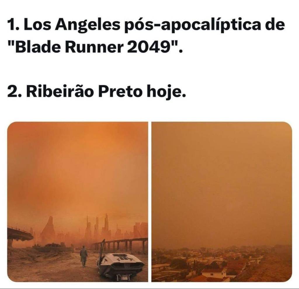 Todo mundo já ouviu, toda rádio já tocou, muita gente já casou e toda festa de firma já chorou (incluindo aí aquelas firmas que poluem, destroem e financiam políticos obtusos) ao som de What a wonderful world, cantada por Louis Armstrong. Mas nunca ouvi em nenhum convescote, de gravata ou havaiana, Louis Armstrong cantando Give Peace a Chance. Nem ontem, nem hoje e acho que nunca ouvirei Louis & Lennon juntinhos na caixa. Meu amigo Luis Marcelo Mendes truca que foi pilantragem, que o Satchmo entrou no estúdio, leu a frase, pensou, só isto que eu tenho que cantar? E mandou brasa. Uma brasa, mora? Outro chapa, o Zé José, postou uma foto com uma cena de Blade Runner 2049 ao lado de um campo ardendo em Ribeirão Preto 2024. Uma brasa, mora? Nos anos 80 Glauco criou o Zé do Apocalipse, um místico 171 que ficava vendendo catástrofes pra descolar um sanduíche na Fradique Coutinho. Nos anos 80 a gente já sofria, mas ainda acreditava que o apocalipse tava longe, mesmo com a ameaça dos mísseis atômicos. Foi na década de 80 que começou o reinado da dobradinha indigesta de giló amargoso Ronald & Margareth…Pensando bem, o apocalipse começou com eles. A gente devia ter percebido que aquele era o primeiro grande sinal que as forças cósmicas do universo estavam nos mandando. Era o primeiro aviso: Se liguem! Preparem-se, porque tudo irá para a casa do caraleoowww. Mas o otimismo é uma doença. Somos movidos à esperança e de vez em quando rola um me engana que eu gosto. A gente sabe que é cascata, mas embarca. Eu por exemplo, acredito e embarco em reza forte. Sem reza forte não se chega na lua e nem em Piracicaba. Sem fé o Botafogo jamais seria campeão. Portanto, oremos: