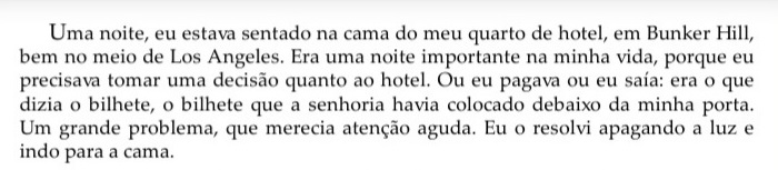 John Fante escreveu Pergunte ao Pó em 1939. Fante é o rei da prosa instantânea, Fante é prosa nescafé, só que diferente do pó xexelento da nestlé, a escrita dele é padrão café adubado com cocô de macaco javanês, daqueles que os milionários de los angeles pagam uma grana pra tomar uma xicrinha. a grana que o bandini, alter-ego de fante, jamais teve, enquando gastava sola de sapato por bunker hill, no centro da cidade dos anjos. bukowski era fã de carteirinha. caio fernando abreu também. Abaixo, o primeiro parágrafo: