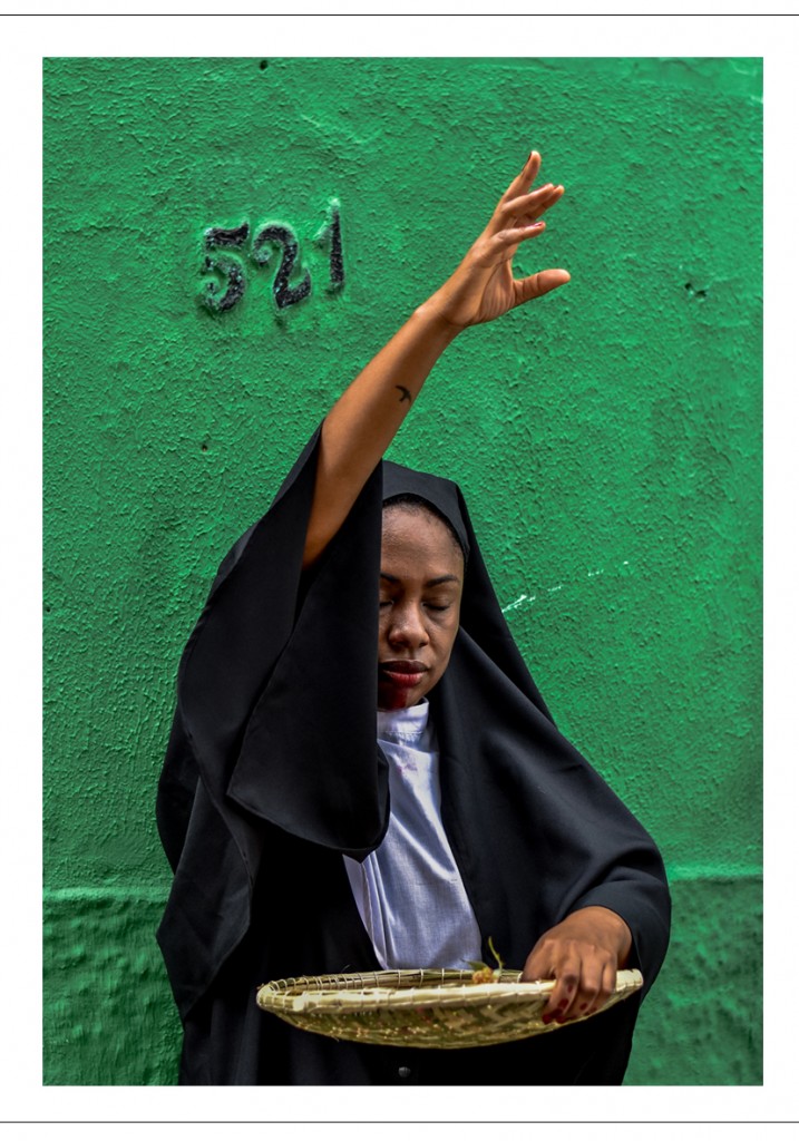FM: O que você oferecia para as pessoas? RF: Acarajés. Eu encomendei mini-acarajés, pequenos como hóstias, para as pessoas receberem na boca como se fosse uma hóstia. Acarajés com bastante pimenta. Pensei em Iansã, a esposa do Orixá da Justiça, pensei nesse alimento para ser distribuído não como uma benção, não é um corpo de Cristo que você está recebendo, você está recebendo um corpo de justiça, na rua Maria de Araújo, para pessoas que não sabem quem ela foi.